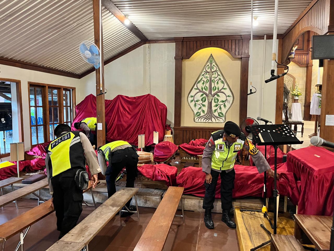 “Sterilisasi gereja ini kami laksanakan untuk memastikan tidak adanya benda atau hal mencurigakan yang dapat mengganggu keamanan dan kenyamanan jemaat dalam melaksanakan ibadah Natal,” Kasat Samapta Polres Klaten AKP Edris Prayitno, S.H.